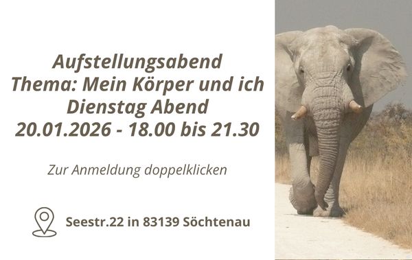 Am Abendseminar „Mein lieber Körper und ich“ am Dienstag, den 20. Januar, kannst du dir mit Familienaufstellungen nach Hellinger und innerer Begegnung von Julia Maria Thimm anschauen, was hinter Symptomen liegt.